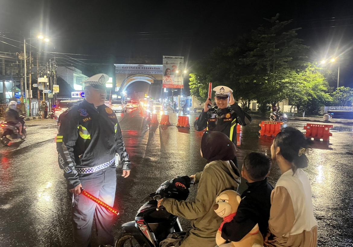 Antisipasi Kemacetan, Satlantas Polres Pesawaran Gelar Patroli Malam di Titik Rawan Gedong Tataan