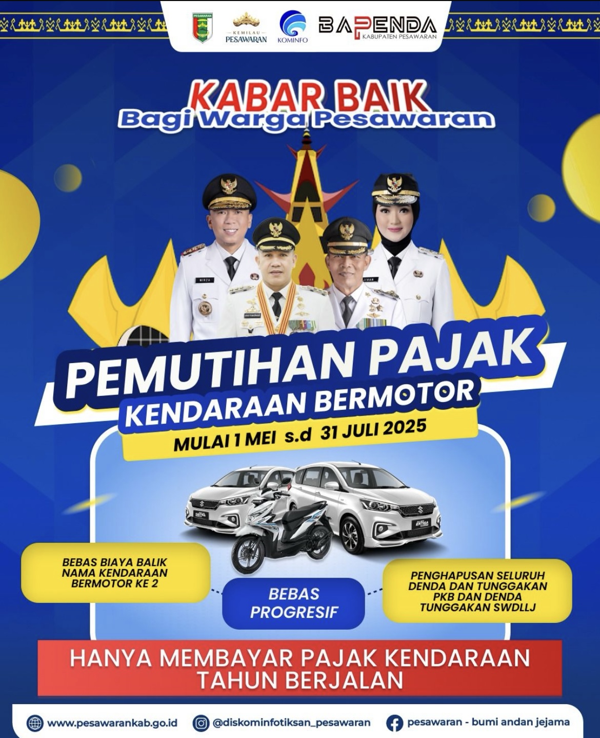 Informasi lebih lanjut mengenai promo pemutihan pajak di Pesawaran dapat diakses melalui hotline Bapenda di nomor: 08117963322. (Rls)