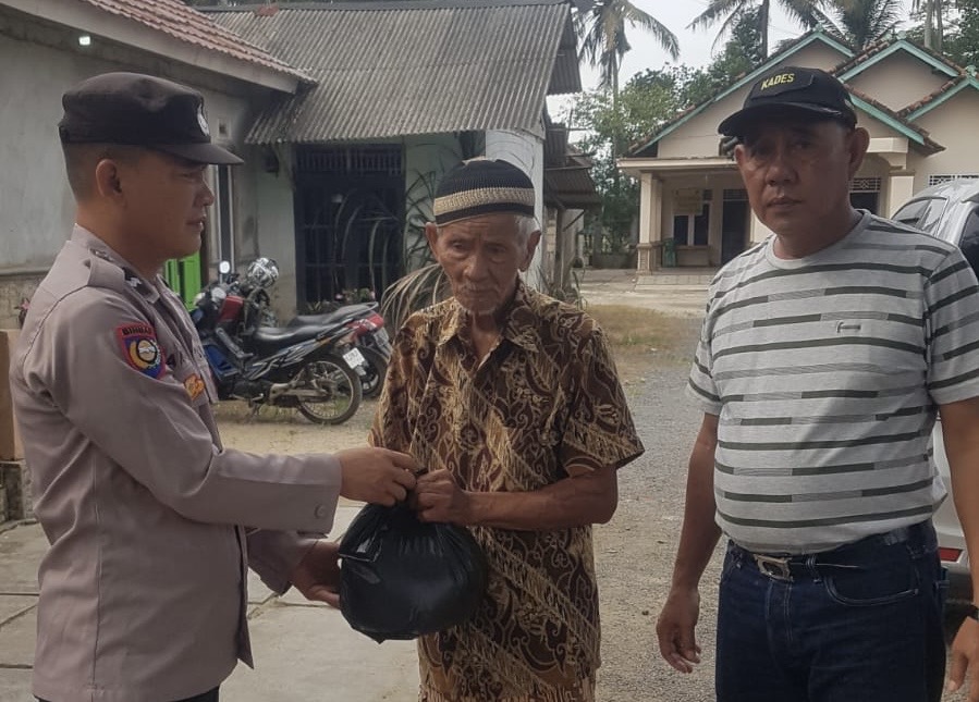 Bhabinkamtibmas Polsek Tegineneng Dan Kades Bagikan Sedekah Kepada Warga