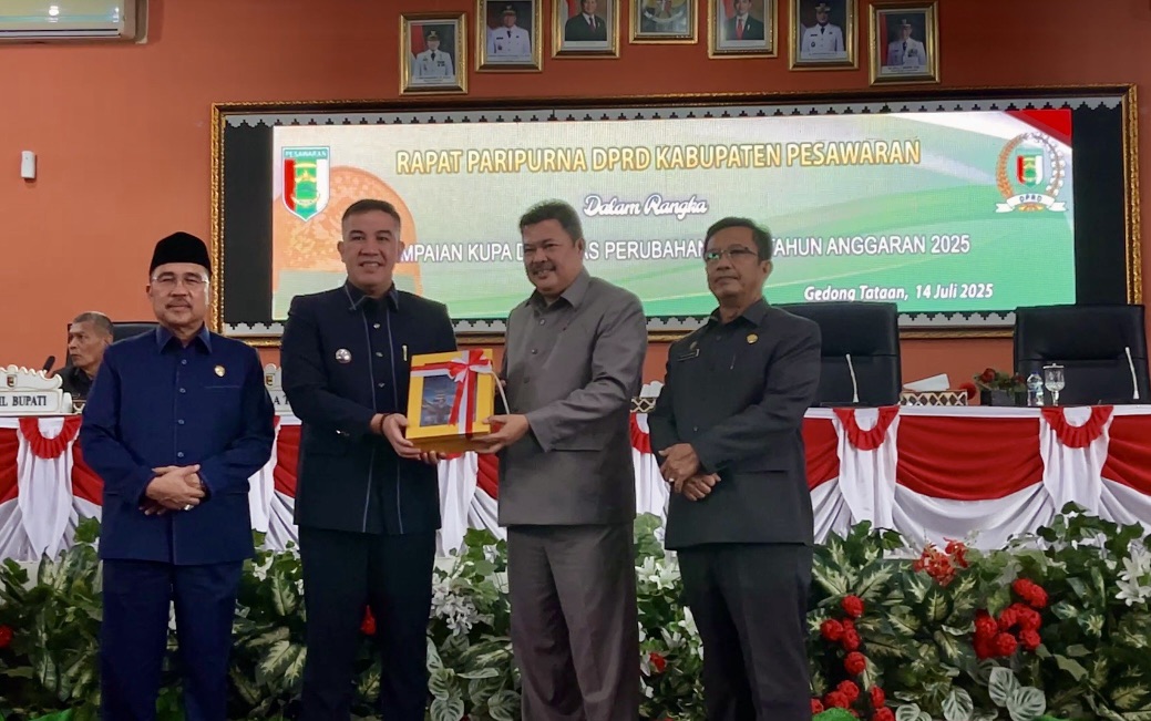 PESAWARAN – DPRD Pesawaran menggelar kegiatan penyampaian Rancangan Kebijakan Umum Perubahan APBD (KUPA) dan Rancangan Perubahan Prioritas Plafon Sementara Tahun Anggaran 2025. Kegiatan yang dilaksanakan pada Senin 14 Juli 2025 ini di pimpin langsung oleh Wakil Ketua I DRPRD Pesawaran, M. Nasir dan dihadiri oleh Bupati Pesawaran, Dendi Ramadhona.