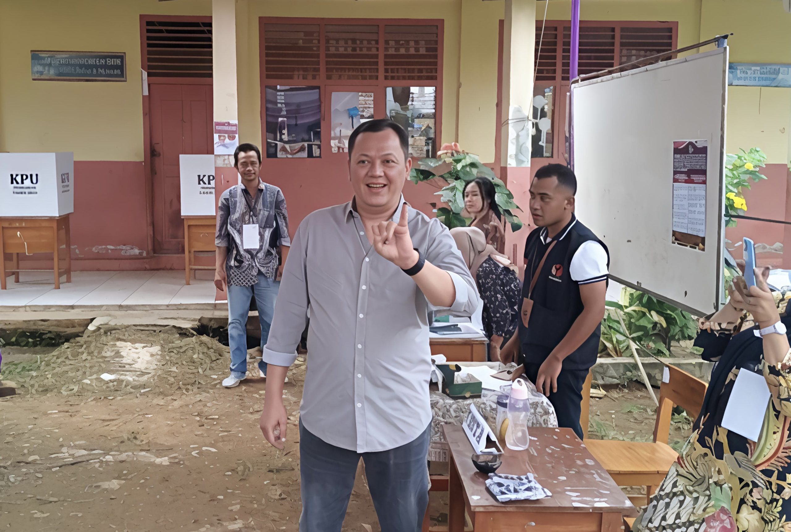 Nyoblos Di Gedung Tataan, Aries Sandi Beri Selamat Kepada Supri & Suri